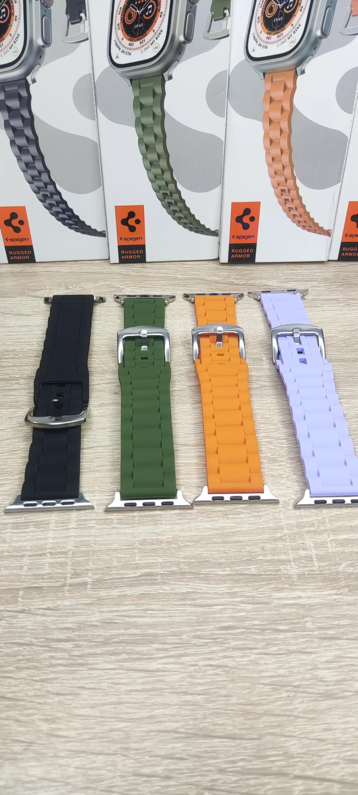 Bracelet SPIGEN ORIGINAL RUGGED  ARMOR ( Très Solide) pour Apple Watch, en silicone, 49mm 44mm 40mm 45mm 41mm 42mm 38mm 40 44, iWatch série 7 6 8 et 8 ultra.